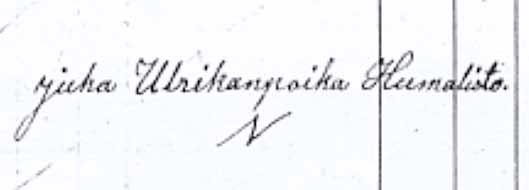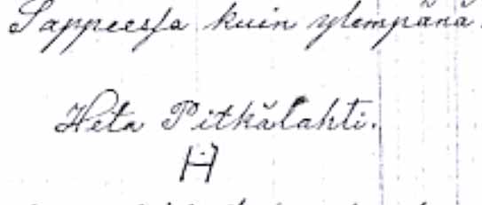 ”Wuonna 1908 joulukuun 12 päivänä toimittivat kirjoitetut uskottuina miehinä kalun kirjoituksen Pälkäneen pitäjän Sappeen kylässä Heikkilän perintötalossa sieltä wiimmes Elokuun 16 p kuolleen Leski emännän Wilhelmiina kustaan tyttären perään joka kuollessaan jälkeensä jätti Perilliseksi laillisessa ijässä oleva poika Juho Henrik Juhonpoika Heikkilä joka myös edes antoi pesässä olevat varat